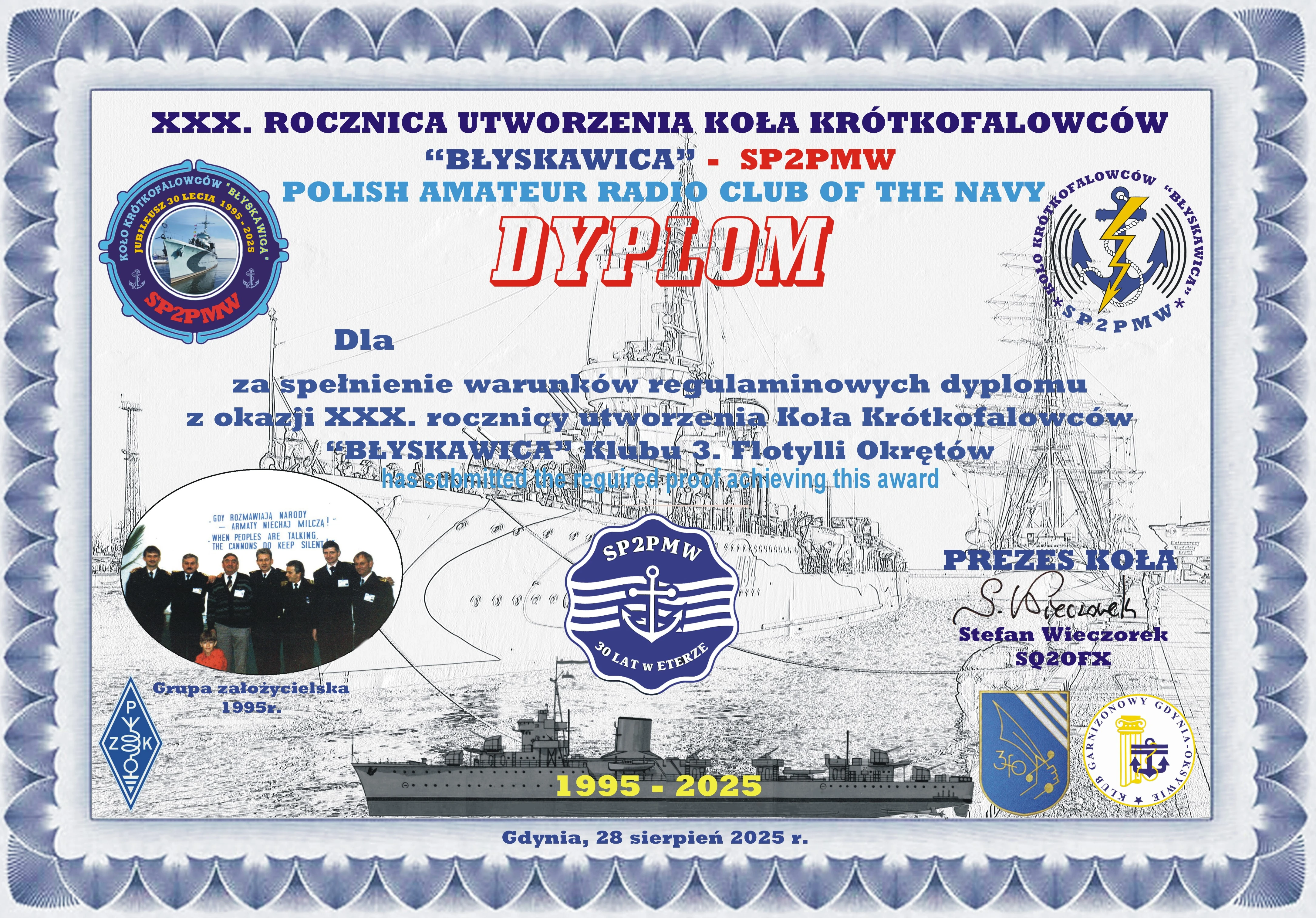 | Data | UTC | Uczestnik | Punkty | Stacja | Status | Pasmo | Emisja | RST | eQSL |